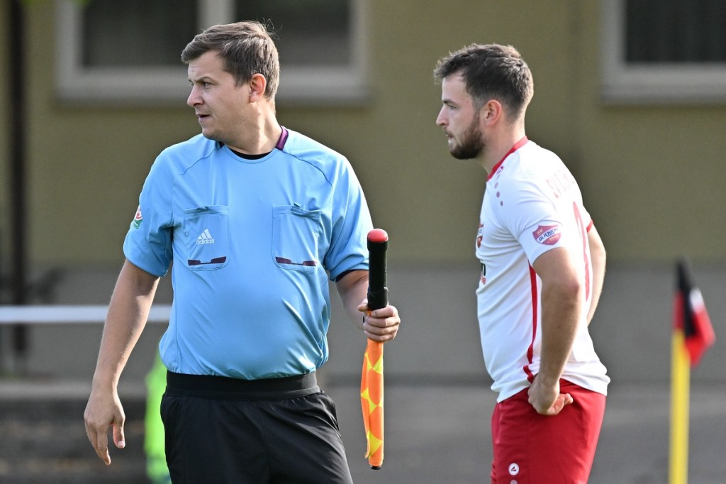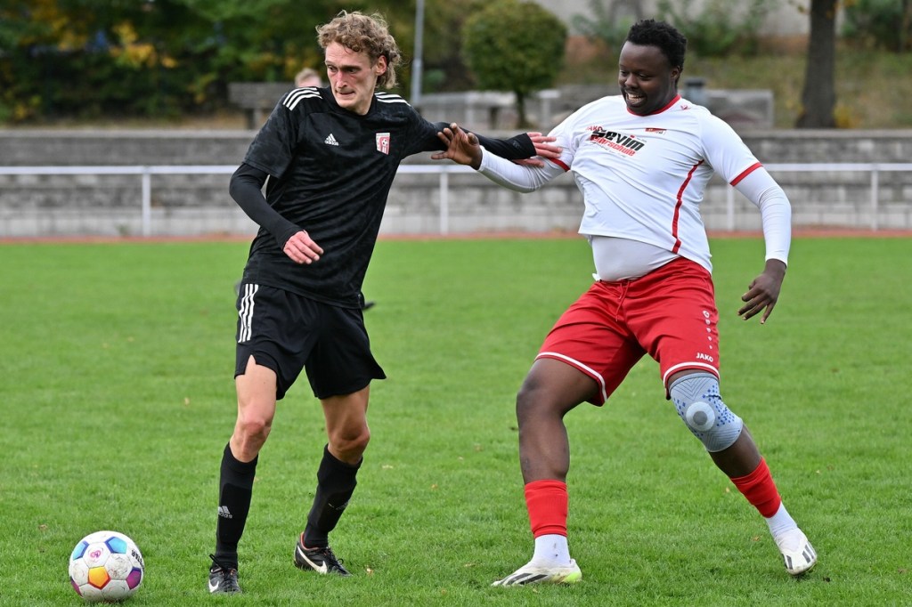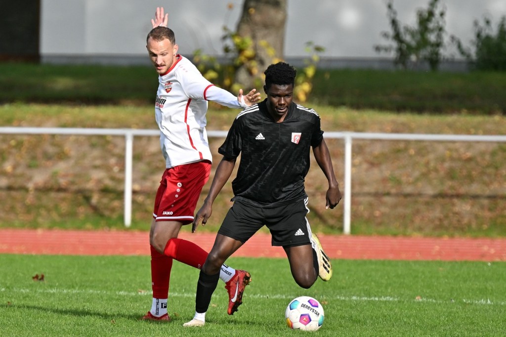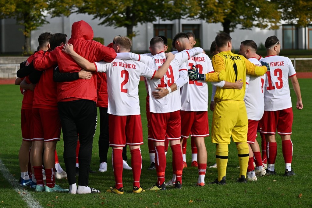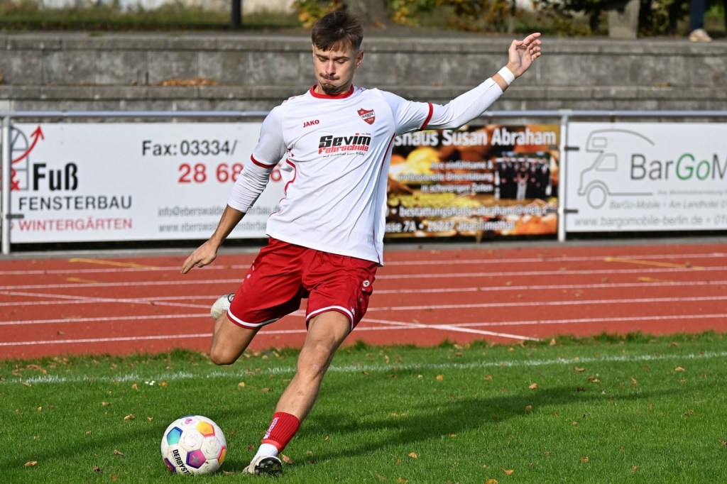 Es war über die gesamte Spielzeit eine sehr sehenswerte und vor allem spannende Partie, die eigentlich alles bot, was man so von einem Pokal-Samstagnachmittag erwarten und erhoffen konnte. Leidenschaft, Intensität, Moral, Zweikämpfe auf Kante gestrickt und ein Rasenplatz, der mit seinem weichen und unebenen Zustand irgendwie zu diesem Spiel passte. Dabei hatten die Gäste die Anfangsminuten für sich gebucht und schon mal mächtig Druck aufgebaut. Schon in der zweiten Minute hatte sich Philipp Golembus über rechts kommend zur Grundlinie am Fünfmeterraum der Hausherren durch getankt und in den Rückraum gepasst. Dort lauerte Pascal Böhme, der im Gewühl vieler Eberswalder Beine die Kugel nicht richtig aufs Tor bringen konnte und schlussendlich nur einen Eckball herausholte. Keine zwei Minuten später setzte Lok zum ersten Konter an. Dyako Dana Jabar wurde passgenau auf die Reise geschickt und setzte seinen Abschluss scheinbar etwas nerven flatternd neben den Kasten von SV-Keeper Lucas Bittighofer, der sich entgegenkommend breit gemacht hatte. Während Glienicke die Machtverhältnisse bestimmte, setzte die Heimelf auf Sicherheit in der Defensive und im Vorwärtsgang auf gut durchdachte und zelebrierte Tempovorstöße. Dabei waren Dyako Dana Jabar und Mamadou Scheik Touray die auffälligsten Akteure, aber auch die Adressaten, die sich gerade in den Eins-gegen-Eins-Duellen mit Bittighöfer auf die Zweiter-Sieger-Seite stellen mussten. Die Partie lebte in der Folge von der Spannung und auch von der Abwechslung. „Dit jeht jut hin und her“, hätte als Prädikat zum Spiel passen können. Was aber fehlte, waren die Tore, bei denen die Mühlenhaupt-Truppe chancen-technisch im Vorteil war. Hundertprozentig für Lok wurde es doppelt in der 21. Minute. Erst scheiterte Leo Ansorg am überragend reagierenden Bittighofer. Den zweiten Ball erarbeitete sich Dyako Dana Jabar, mit dem Resultat, dass er das Spielgerät aussichtsreich rechts neben den Pfosten setzte. Die Gäste blieben weiter am Drücker, kreierten ein paar Halbchancen, die sicher verteidigenden Hausherren kaum in die Bredouille brachten. Richtig knackig wurde es für die Heimelf, speziell für ihren gerade eingewechselten Keeper Candy Müller, in der 31. Minute. Glienickes Philipp Golembus bekam den Ball in den Lauf gespielt und zwang Müller bei seinem Schuss Kopf und Kragen, und nicht nur das, zu riskieren. Letztendlich entschärfte der Keeper mit Schmerzen im Nachgang die Situation. Den Schlusspunkt im ersten Durchgang für den Auftritt seines Teams setzte Dyako Dana Jabar. Auf die Reise geschickt, unterlag er wieder im Duell mit Bittighofer und mutierte schon etwas zur tragischen Figur, hinsichtlich des Versagens vor der gegnerischen Bude (43.). Aber auch Glienicke kam noch zu einer erwähnenswerten Möglichkeit. Einen abgewehrten Ball nahm Pascal Böhme mit Risiko volley, verzog dabei nur knapp (45.+4).