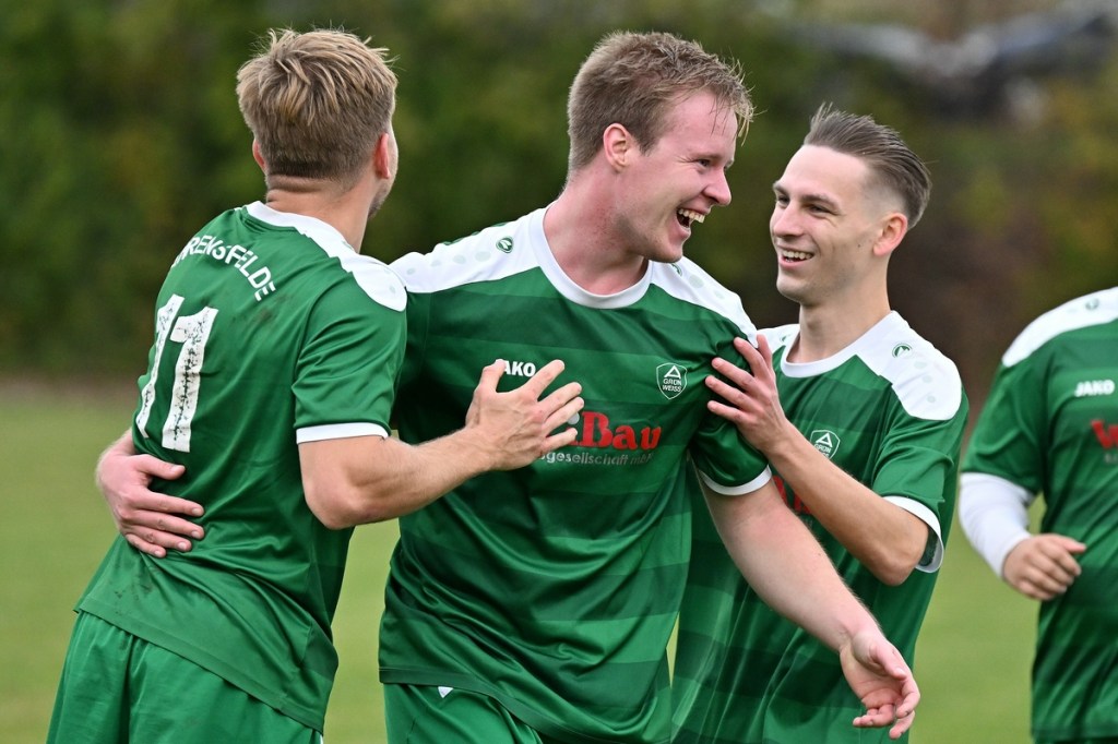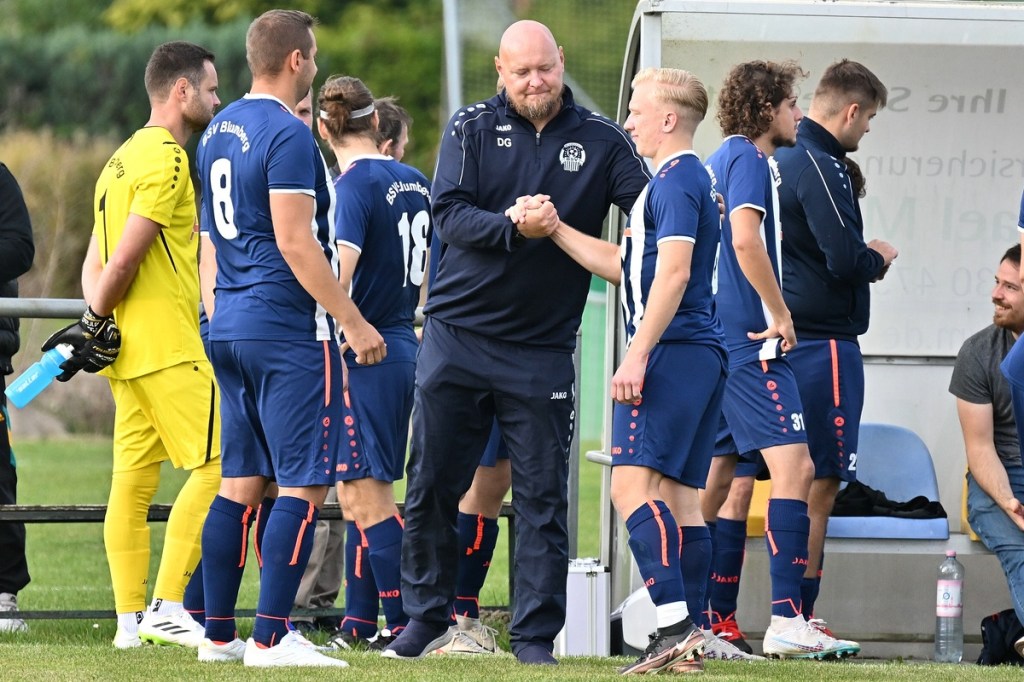 Der zweite Durchgang wurde dann schnell zur Leidenszeit für die Hausherren. Mike De Rapper hatte in der 49. Minute seinen Fauxpas vergessen gemacht. Die Kugel in den Lauf gesteckt, vollendete er sehr besonnen zum 1:4. Auch Reisner machte wieder von sich reden, als er genau wie de Rapper das Spielgerät vorbei am armen Kirfe ins Netz bugsierte (51.). Die Partie war nun entschieden. Blumberg gab sich trotz der anbahnenden Derby-Schmach zumindest moralisch nicht geschlagen und versuchte das Komplett-Debakel irgendwie zu verhindern oder im Rahmen zu halten. Dies gelang auch recht erfolgreich bis zur 75. Minute. Eine Freistoß-Variante der Gäste aus dem rechten Halbfeld brachte das 1:6 und wurde im Nachgang besonders gefeiert. Oliver Kluschke hatte augenzwinkernd seinen Kollegen Tobias Berger an der Strafraumgrenze angespielt, der vollkommen frei keine Probleme hatte, den Ball unhaltbar zu versenken. Ahrensfelde kannte keine Gnade. Der eingewechselte Patrick Hilliger, eigentlich mit Torhüter-Genen ausgestattet, machte die siebente GWA-Bude. Dabei blieb er im ersten Versuch an Kirfes Händen hängen, setzte aber nach und drückte den Ball aus Nahdistanz über die Linie (80.). Den Abschluss des überzeugenden Ahrensfelder Auftritts setzte der ebenfalls eingewechselte Marcel Adamowicz. Auch er bewies Torjäger-Qualitäten, als er sich im Strafraum der Hausherren durchsetzte und erntereif vollendete (90.). „Wir sind personell schon arg gebeutelt und durch die erneuten Verletzungen wird die Spielerdecke noch dünner. Leider haben wir nicht so eine Kaderbreite wie Ahrensfelde. Mit dem Halbzeitergebnis wäre noch etwas möglich gewesen, doch nach den beiden Treffern kurz hintereinander war die Moral natürlich weg. Wir müssen das Ergebnis schnell aus den Köpfen bekommen, denn kommende Woche in Wandlitz wird es nicht einfacher. Dann muss man erst einmal schauen, wie sich die Mannschaft aufstellt“, so die Spielanalyse von Blumbergs Coach Dennis Greger. Ahrensfelde gehört nun definitiv zum Favoritenkreis der Liga. „Das sind wir sicherlich, trotzdem ist das nicht unser vorrangigstes Ziel. Sollte sich dies so ergeben, werden wir das natürlich mitnehmen“, kommentierte Marco Fiedler diesen Umstand.