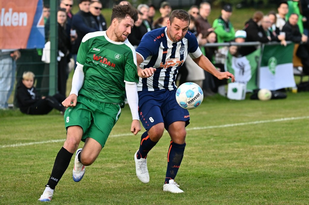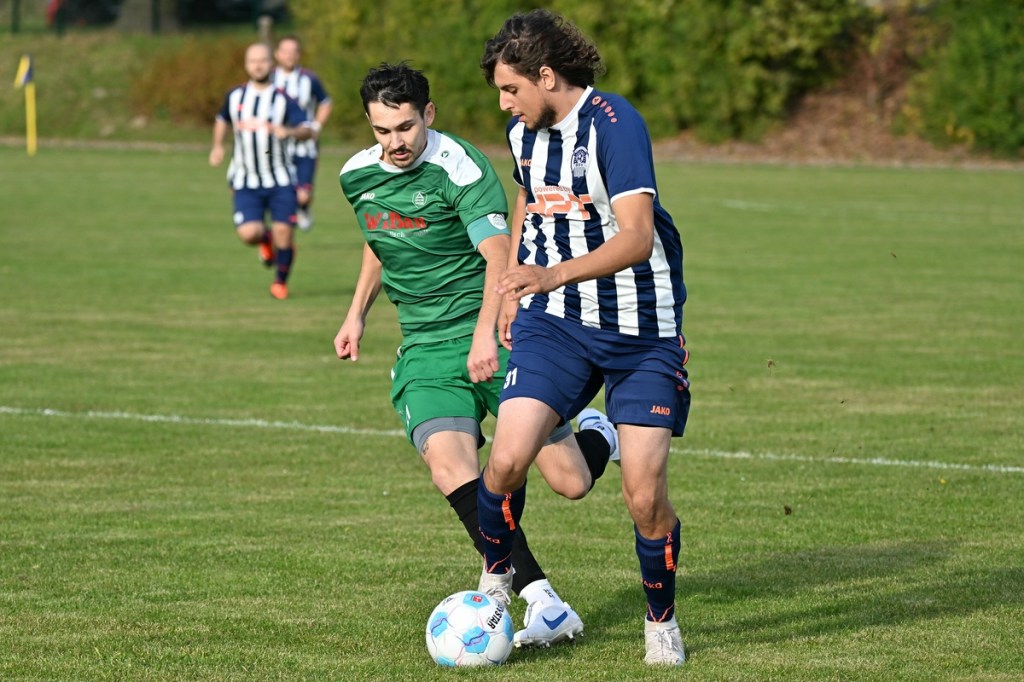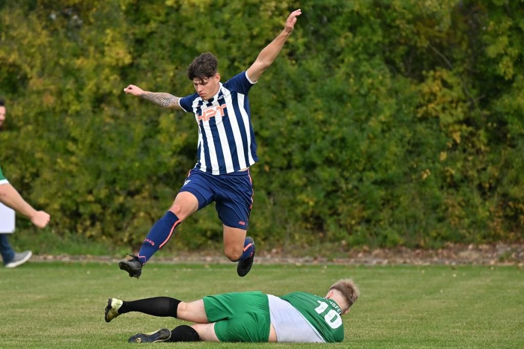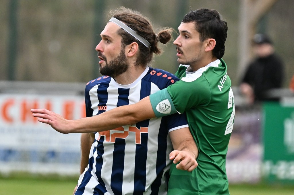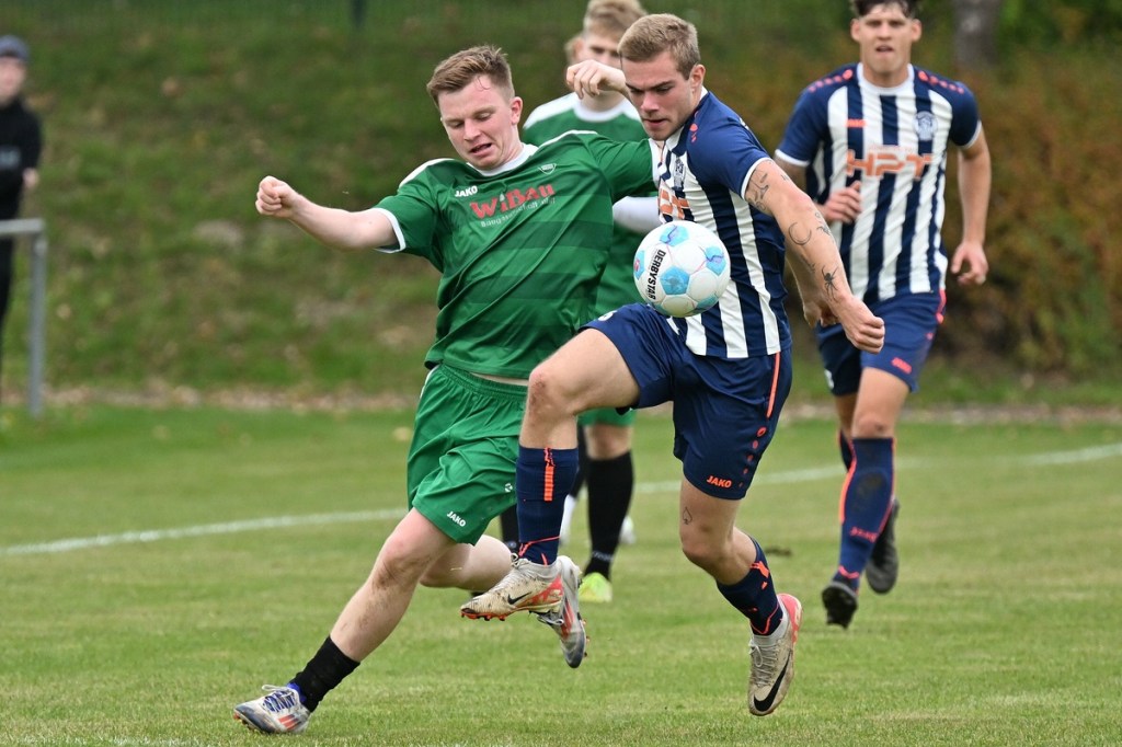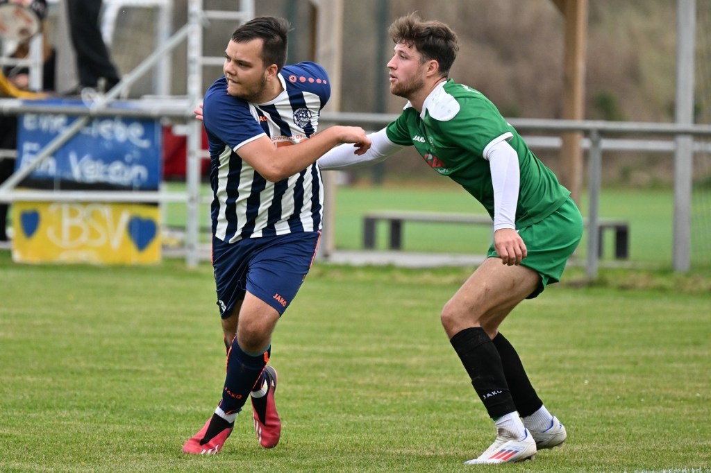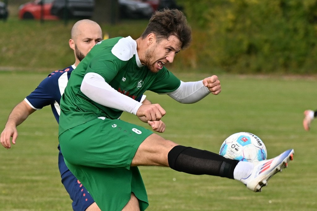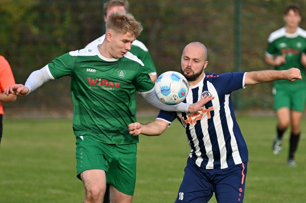 „Ich glaube, wir haben von Beginn an das Spiel bestimmt und mit den drei frühen Toren für klare Verhältnisse gesorgt“, hatte GWA-Coach Marco Fiedler in Nachgespräch angemerkt und damit schon das Spiel eigentlich im Gesamten erklärt. Sein Team begann mit Spielfreude, noch auf Sicherheit getrimmt, sehr strukturiert und abgeklärt. Die sichtbare Matrix der Gäste hatte auch Blumbergs Übungsleiter Dennis Greger gesehen und so ein wenig als Ursache für die Niederlage und als Unterschied zu seiner Truppe ausgemacht. Obwohl Blumbergs Erik Bredereke in der 5. Minute nicht ungefährlich einen Kopfball auf den Gäste-Querbalken gesetzt hatte und damit ein kleines Rauchzeichen entfachte, lag die Kugel wenig später zum 0:1 im BSV-Kasten. Ein Eckball von der linken Seite, geschlagen von Oliver Kluschke, fälschte Blumbergs Andreas Kimi so ab, dass dieser im langen unteren Eck einschlug (9.). In der Folgezeit ließ Grün-Weiss nichts anbrennen. Blumberg hingegen hatte große Probleme in der Defensive, gerade die Sprintduelle für sich erfolgreich zu gestalten und irgendwie auch zu unterbinden. Besonders wenn die schnellen Gästeangriffe über Justin-Gill Reisner liefen, brannte es vor dem Kasten von Christopher Kirfe lichterloh. Reisner war es dann auch, der die Anzeigetafel in der 12. Minute auf 0:2 stellte. Ein unnötiger Ballverlust der Hausherren wurde zum Bumerang, den der Torschütze in Kaltschnäuzigkeit und Torjägermanier für sein Team erfolgreich ummünzte. Die Heimtruppe wackelte, weil die Grün-Weissen nicht lockerließen und dabei mit den sich nicht allzu häufig bietenden Möglichkeiten recht schlampig umgingen. Die BSV-Offensive hingegen zuckte nur sporadisch, wie bei dem Schuss von Justin Philipp Bosch, der GWA-Torsteher Dominik Vollmer zur Parade zwang (18.). Trotzdem führten die Gäste nach zwanzig Minuten mit 0:3 und dies auch absolut verdient. Den dritten Treffer hatte Nicolae Bors markiert, als wiederholt die letzte Hausherren-Reihe stümperhaft agierte und er mit seinem platzierten Schuss keine Fragen aufkommen ließ. Die Begegnung schien entschieden. Blumberg blieb weiterhin blass und konnte von Glück reden, in der Folgezeit nicht weiter unter die Räder gekommen zu sein. Den Hausherren-Lichtblick organisierte Ahrensfelde selber in Persona Mike de Rapper. Dessen Rückpass verunglückte bzw. verhungerte dermaßen, dass BSV-Stürmer Erik Krüger zum „Angespielten“ wurde und abgeklärt das 1:3 erzielte (35.). Für Blumberg war dies der Schalter zumindest in den Zweikämpfen angekommen zu sein und damit der Partie auch ein wenig Derby-Charakter verliehen zu haben.