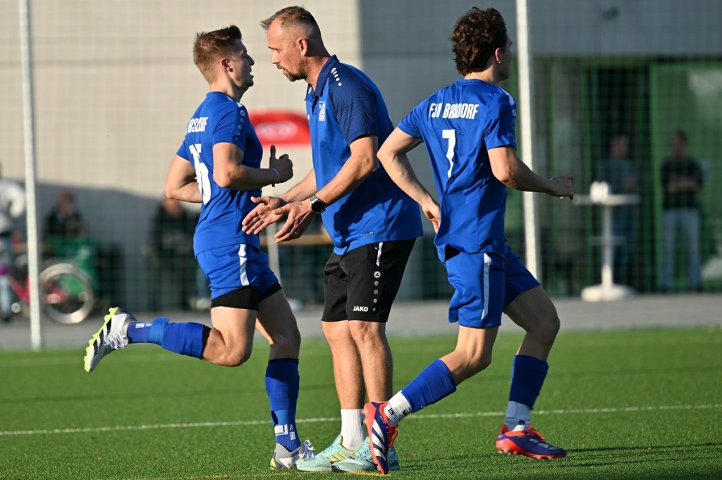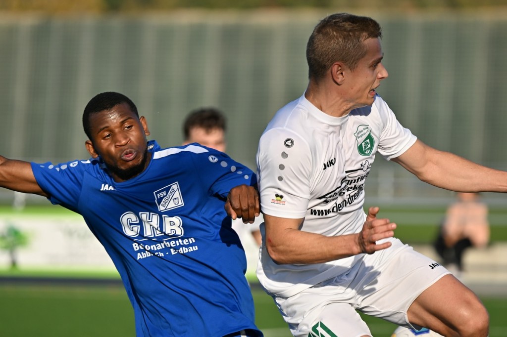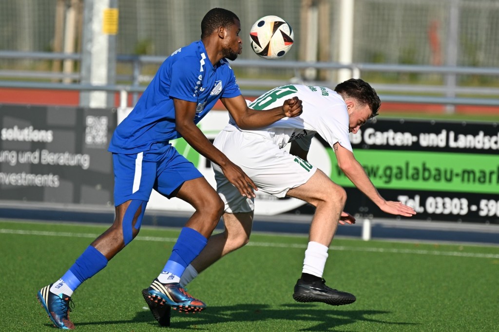 Bei bestem Herbstwetter und „gepflegtem“ Kunstrasen begannen beide Vertretungen personal geschwächt mit einem schleppendem Aufgalopp. „Ohne fünf wurde das natürlich schwierig“, hatte Gäste-Trainer Marcel Teske im Nachgang analysiert und damit auf das fehlende Personal verwiesen. Dabei bestimmten seine Jungs die Anfangsminuten, in denen Bergfelde mit Passivität glänzte und die Gäste erst einmal machen ließ. So konnte der FSV den ersten Abschluss verbuchen, den Niklas Krause nach einem Eckball, dann von der Strafraumgrenze knapp rechts neben den Kasten setzte (2.). Nach gut zehn Minuten taute Grün-Weiß spürbar auf und machte in der 13. Minute die erste Torschuss-Ansage Richtung Gäste-Fraktion. Die Möglichkeit resultierte ebenfalls aus einem Eckball, der flach in den Rückraum gespielt wurde. Justin Wende nahm als Adressat genau Maß, verfehlte sein Ziel aber doch um einige Meter. Es blieb eine Partie auf Augenhöhe, mit dem Hauptaustragungsort zwischen den Strafräumen und dem Prädikat der schweren Kost. Zu sehr versuchten beide Vertretungen die Machtverhältnisse in die Klärung zu bringen und wirkten dabei irgendwie verkrampft und auch etwas planlos. Chancen, wie die von Marcel Weihrauch, der bei seinem platzierten Geschoss Pech hatte, dass ein Basdorfer Fuß den Einschlag verhinderte (16.) und dem Drehschuss von Justin Wende, der in den Armen von FSV-Keeper Tibor Kreiger landete (20.), hatten schon etwas Zählbares verdient. Auch der abgefälschte Lattentreffer durch Steven Schultz passte in die Grün-Weiße Chancen-Aufzählung (25.), doch irgendwie fehlte dem Ganzen die letzte Überzeugung. Basdorf hingegen verschenkte ebenfalls Potenzial in deren seltenen Angriffsbemühungen, weil man einfach nicht in der Lage war, Konsequenz und vor allem Genauigkeit in den Vorwärtsgang zu bekommen. Wie es für den FSV hätte gehen können, zeigte Mamoudou Camara in der 28. Minute. Über die linke Seite, technisch versiert kommend, legte er für Justin Anthony Küchler auf, der die Kugel dann kurz vor der Fünferkante verwertete und über den Kasten setzte.
