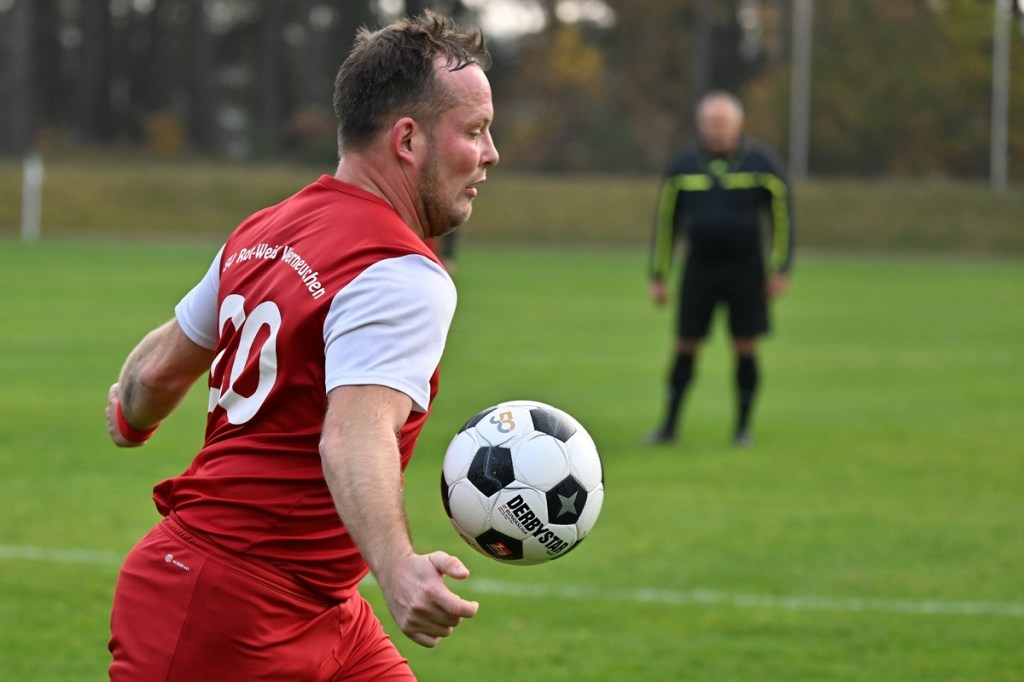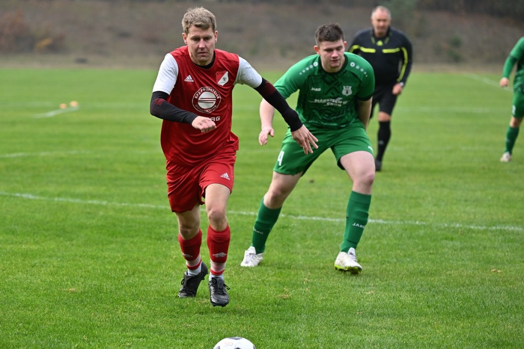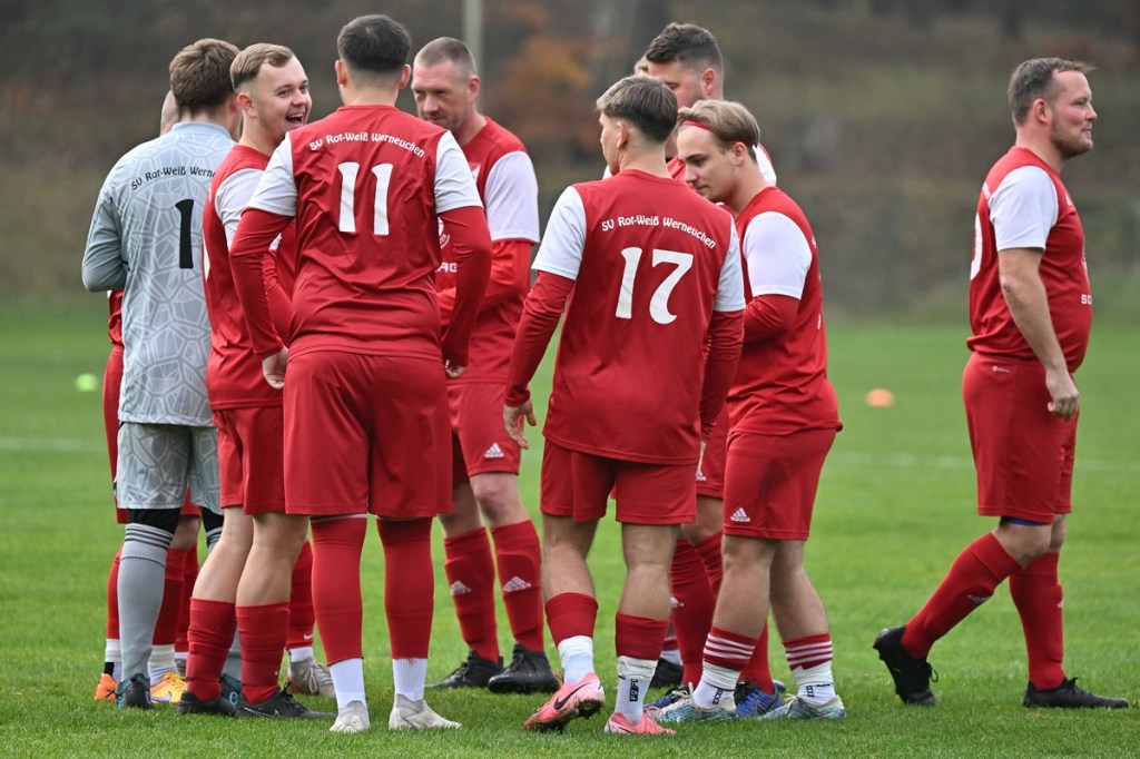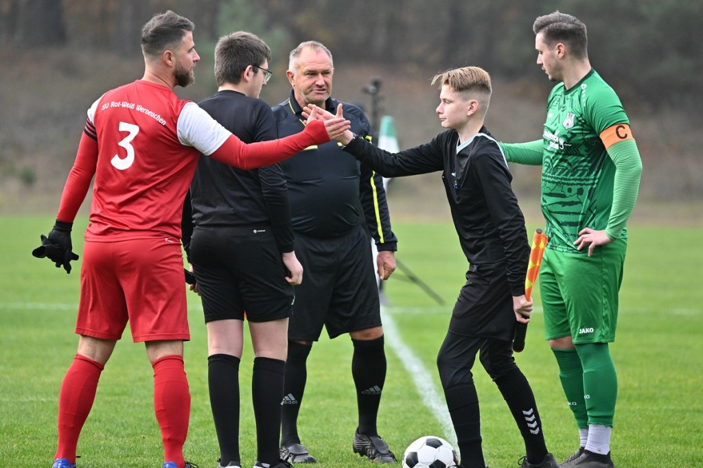 Für Werneuchen lief die Partie von Beginn an wie am Schnürchen. Die Zweikampfquote passte, die Machtverhältnisse lagen im positiven Bereich und bei den Abschlüssen setzte man schon die ein oder andere Hausmarke. Und mit dem Selbsttor der Hausherren, erzielt durch Jeremy Siegel, der eine kniehohe Eingabe von der rechten Seite, bei seiner Abwehraktion ins eigene Netz bugsierte, konnte man schon von einem Top-Einstieg in die Begegnung sprechen (5.). Rot-Weiß wollte mehr und hätte dies auch auf die Anzeigetafel bringen können, wenn nicht gar müssen. Doch eine gewisse Schlampigkeit, im Fußball-Jargon „fehlende Kaltschnäuzigkeit“ genannt, machte ein frühes Einbiegen auf die Siegerstraße zunichte. Gute fünfundzwanzig Minuten lief bei den Gästen vieles richtig, mussten aber auch den sehr guten Möglichkeiten von Lukas Daniel Jäger (3., 17.) und Germain Pötzsch (8.) nachtrauern. Zwischenzeitlich meldete sich auch mal die SpG mit einem Ausnetztreffer, der von Nick Vollmer aus spitzem Winkel aufs Tor gebracht wurde (15.). Schon ein wenig unerklärlich, übergaben die Gäste in der Folge das Aktivitätszepter an die bis dahin kaum zusehende Spielgemeinschaft. „Ich denke, dass die Jungs ein wenig verunsichert waren mit den Erlebnissen aus vorherigen Spielen“, hatte Gäste-Trainer Tobias Gossel als Grund für die „Machtübergabe“ ausgemacht. Der Rollentausch von der reagierenden zur nun agierenden Fraktion brachte der Heimtruppe aber nur optische und ballbesitztechnische Vorteile, mehr nicht. Denn vor dem Kasten von RW-Torhüter Simon Brunkal agierte die Eitner-Elf viel zu harmlos. Dass sich dies mit dem 0:2 zum ungünstigsten Zeitpunkt, praktisch mit dem Halbzeitpfiff, rächen würde, passte irgendwie zur Suche nach der eigenen Aufwandsentschädigung. Sebastian Böttcher bekam den Ball aufgelegt, brachte sich mit viel Qualität in Schussposition und zog von der Strafraumgrenze einfach mal ab. Sehr zum Leidwesen der Hausherren machte SpG-Schlussmann Stephan Wichert nicht die beste Figur, als er sich irgendwie verschätzte und schlussendlich nur noch zusehen konnte, wie der Ball hinter ihm im Tor landete (45.).