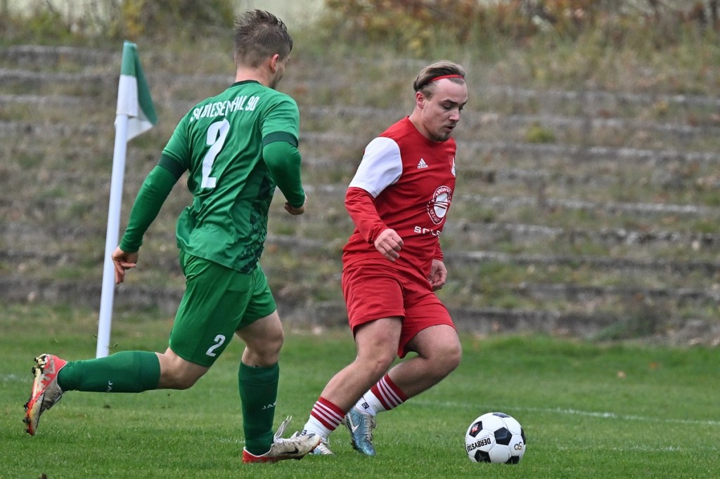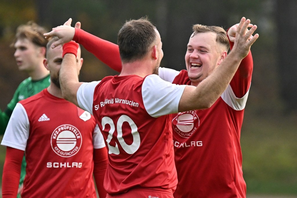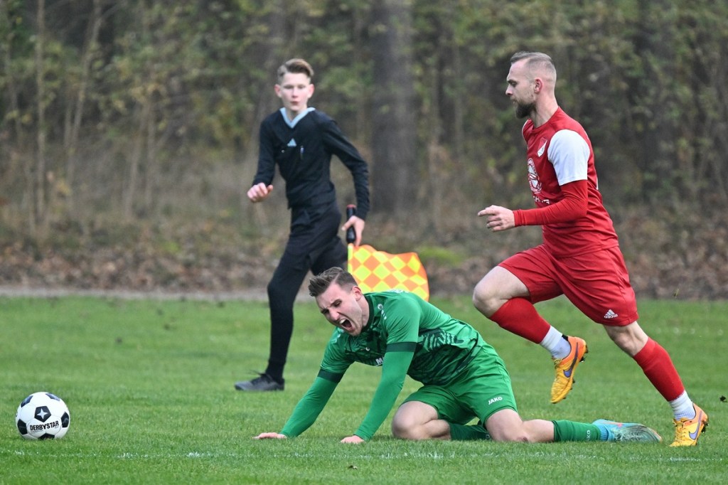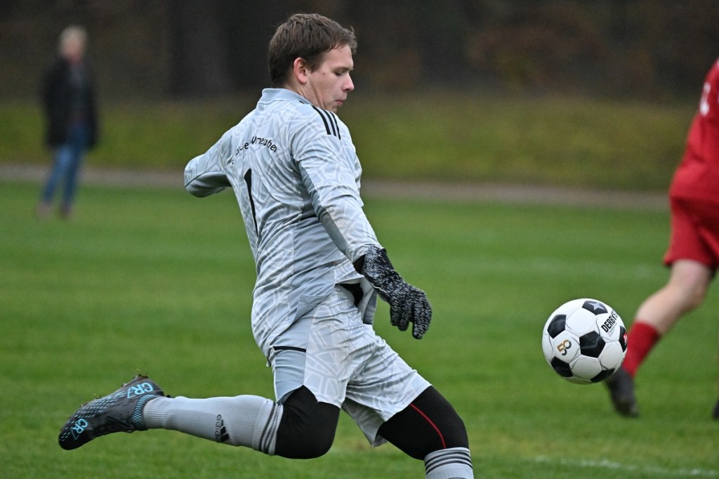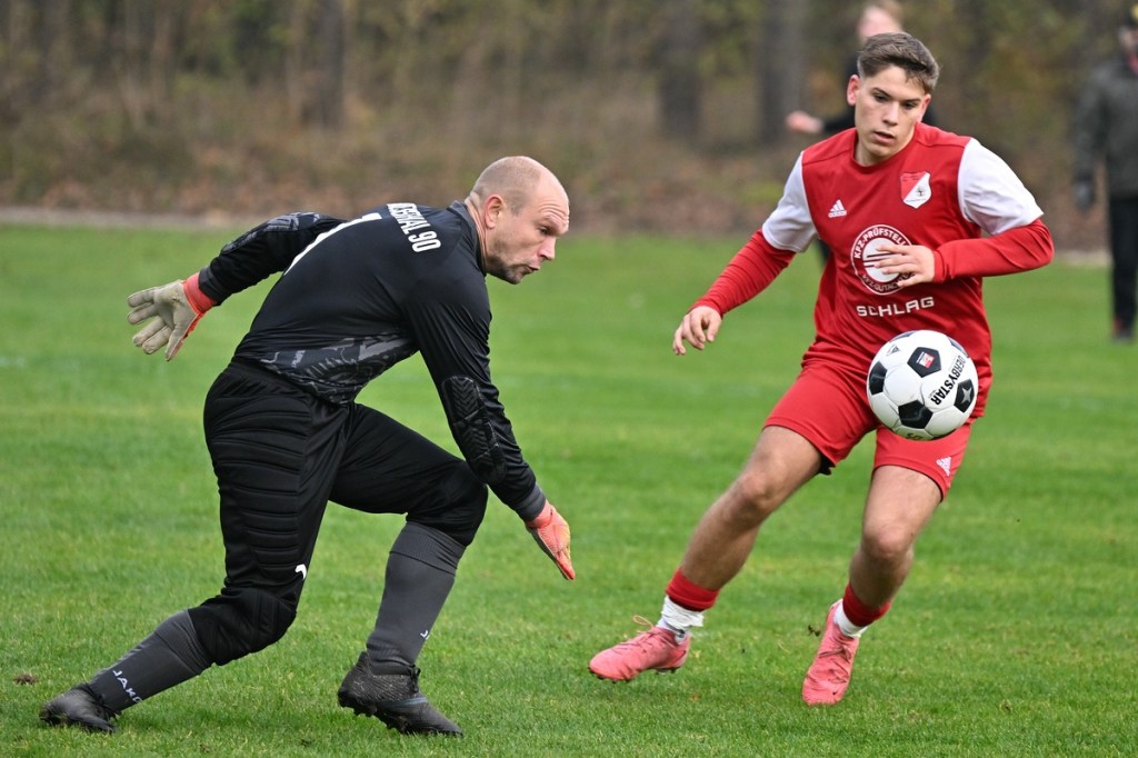 Für Werneuchen lief die Partie von Beginn an wie am Schnürchen. Die Zweikampfquote passte, die Machtverhältnisse lagen im positiven Bereich und bei den Abschlüssen setzte man schon die ein oder andere Hausmarke. Und mit dem Selbsttor der Hausherren, erzielt durch Jeremy Siegel, der eine kniehohe Eingabe von der rechten Seite, bei seiner Abwehraktion ins eigene Netz bugsierte, konnte man schon von einem Top-Einstieg in die Begegnung sprechen (5.). Rot-Weiß wollte mehr und hätte dies auch auf die Anzeigetafel bringen können, wenn nicht gar müssen. Doch eine gewisse Schlampigkeit, im Fußball-Jargon „fehlende Kaltschnäuzigkeit“ genannt, machte ein frühes Einbiegen auf die Siegerstraße zunichte. Gute fünfundzwanzig Minuten lief bei den Gästen vieles richtig, mussten aber auch den sehr guten Möglichkeiten von Lukas Daniel Jäger (3., 17.) und Germain Pötzsch (8.) nachtrauern. Zwischenzeitlich meldete sich auch mal die SpG mit einem Ausnetztreffer, der von Nick Vollmer aus spitzem Winkel aufs Tor gebracht wurde (15.). Schon ein wenig unerklärlich, übergaben die Gäste in der Folge das Aktivitätszepter an die bis dahin kaum zusehende Spielgemeinschaft. „Ich denke, dass die Jungs ein wenig verunsichert waren mit den Erlebnissen aus vorherigen Spielen“, hatte Gäste-Trainer Tobias Gossel als Grund für die „Machtübergabe“ ausgemacht. Der Rollentausch von der reagierenden zur nun agierenden Fraktion brachte der Heimtruppe aber nur optische und ballbesitztechnische Vorteile, mehr nicht. Denn vor dem Kasten von RW-Torhüter Simon Brunkal agierte die Eitner-Elf viel zu harmlos. Dass sich dies mit dem 0:2 zum ungünstigsten Zeitpunkt, praktisch mit dem Halbzeitpfiff, rächen würde, passte irgendwie zur Suche nach der eigenen Aufwandsentschädigung. Sebastian Böttcher bekam den Ball aufgelegt, brachte sich mit viel Qualität in Schussposition und zog von der Strafraumgrenze einfach mal ab. Sehr zum Leidwesen der Hausherren machte SpG-Schlussmann Stephan Wichert nicht die beste Figur, als er sich irgendwie verschätzte und schlussendlich nur noch zusehen konnte, wie der Ball hinter ihm im Tor landete (45.).