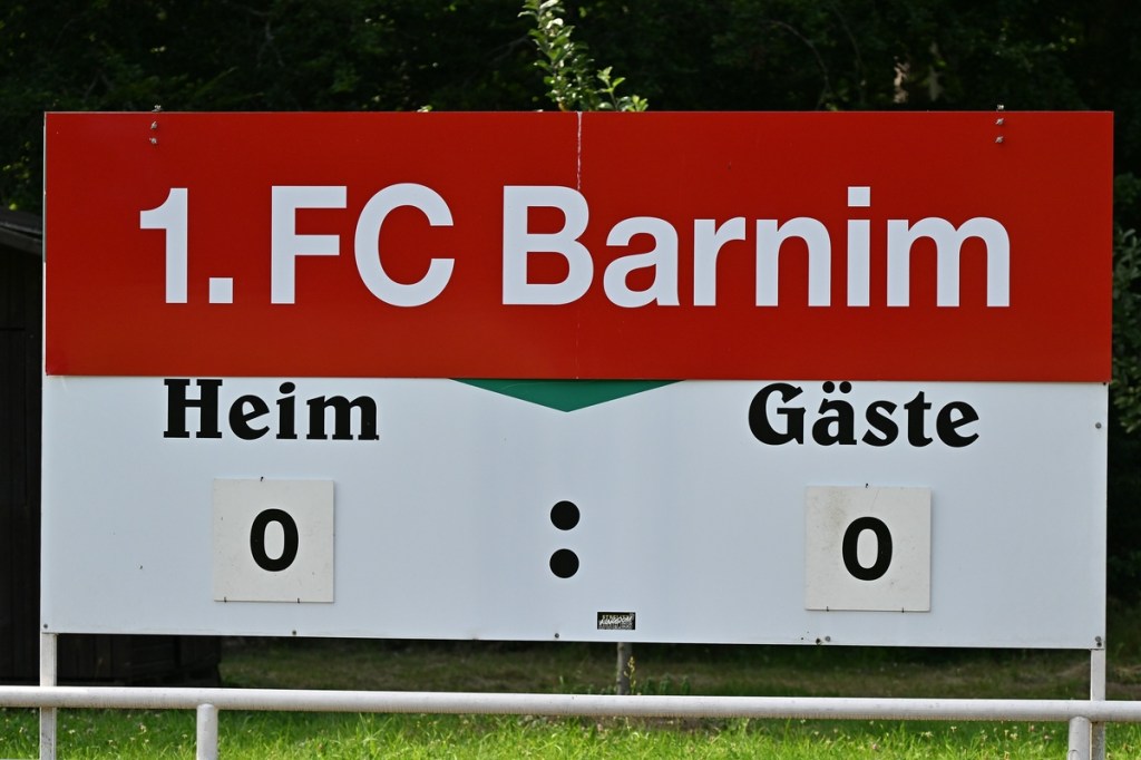 Die Begegnung begann nervös und zerfahren. Besonders auf der Hausherrenseite war der Flattermann zu spüren. Fehlabspiele, unnötige Zweikampfverluste und Mängel in der Ball-An und -Mitnahme bestimmten die Szenerie. Doch von diesen Mängeln hatten auch die Gäste einiges im Petto, was der Partie in der Anfangsviertelstunde nur wenig Qualität einbrachte. So war es eine Standardsituation, die für die Hausherren das 1:0 auf die Anzeigetafel brachte. Ein Freistoß von der linken Seite bereitete den Gästen im Zugriff große Probleme. Nutznießer dieser Verdrossenheit wurde Max Grull, der die Kugel sicher unter Kontrolle brachte und genauso auch im rechten unteren Eck unhaltbar versenkte (18.). Da war es, das erste offizielle Tor der Vereinsgeschichte, was den Hausherren in der Folge spürbar mehr Sicherheit einbrachte. Aslan Khasgeriev packte dann keine zwei Minuten später die Sense aus, als er Barnims Torschützen Max Grull im Mittelfeld recht rustikal von hinten von den Beinen holte. Im Nachgang konnte er sich schon bei Schiedsrichter Henryk Maron bedanken, der sich milde zeigte und es nur bei Verwarnung belassen hatte. Der 1. FC wirkte nun aktiver, wurde aber den Makel des Stückwerkes nicht los. In der 23. Minute machten dann auch die Gäste offensiv von sich reden. Ein Fehlpass der Hausherren brachte Isa Kushanashvili in die Position fast hundertprozentig einzunetzen. Doch sein Schuss verhungerte förmlich auf dem Weg zum Tor und wurde für FC-Keeper Niklas Hilbig zur leichten Beute. Die Folgezeit war dann von erfolgloser Intensität geprägt. „Ich fand schon, dass es eine schlechte Halbzeit von uns war, aber auch von den Barnimern“, stellte Roland Klatt im Nachgespräch fest. Er musste dabei aber schon damit hadern, dass die Hausherren das Halbzeitergebnis sogar noch auf 2:0 erhöhten und bei mehr Kaltschnäuzigkeit und Konsequenz eventuell noch den ein oder anderen Treffer hätten erzielen können. Die zweite Bude erzielte Kevin Dahme, nachdem ihn Nick Path sehenswert per Flanke bediente und er vollkommen frei das Spielgerät im Gästetornetz zappeln ließ (44.).