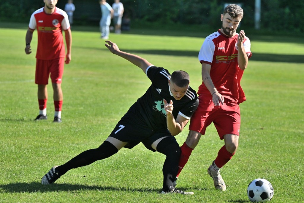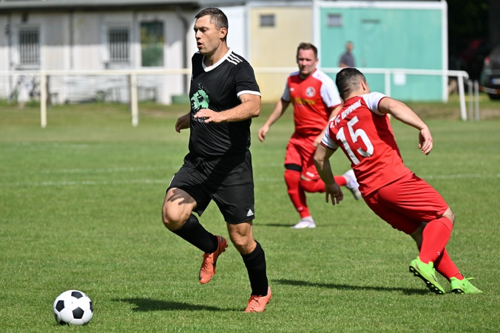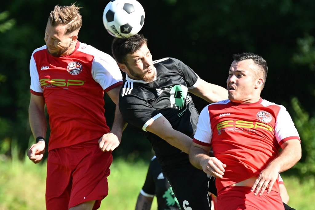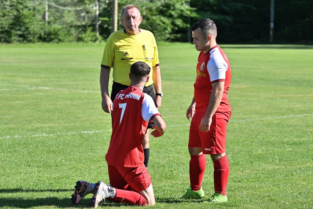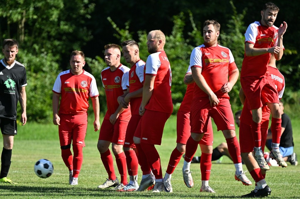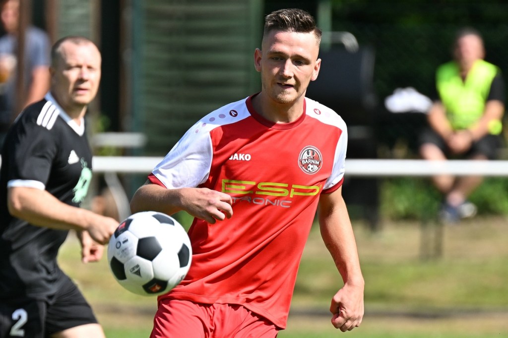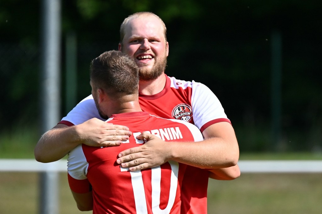 Für die Hausherren wurde der Wiederanpfiff in der Verteilung der Spielanteile dann zum Bumerang. „Wir hatten uns schon vorgenommen, an den ersten Durchgang anzuknüpfen“, analysierte Barnims Vize-Mannschaftsführer Justin Bauer nach Spielende. „Warum das nicht gelang, kann ich mir auch nicht erklären“, legte er noch nach. Denn von Beginn an übernahm Spechthausen das Geschehen. Die FC-Truppe gab den agierenden Part fast völlig ab und sah sich in die Defensive gedrängt. Hinzu kam die Tatsache, dass Referee Maron nicht seinen besten Tag erwischt hatte. Gerade in der Abseitsbewertung lag er einige Male falsch, was der Gemütsbewegung auf dem Feld nicht wirklich guttat. Etliche Diskussionsrunden bestimmten nun die Gemengelage. Waldhof machte Betrieb, kam zu guten Möglichkeiten und belohnte sich recht schnell für den betriebenen Aufwand. Der eingewechselte Malik Chimaev, indessen einer der Aktivposten im Gästeteam, krönte seine Einzelleistung im Dribbling mit dem kaltschnäuzig erzielten 2:1 (54.). Der 1. FC kam kaum noch zur Entlastung. Sporadische Abschlüsse aus der zweiten Reihe zeigten keinerlei Wirkung. Stattdessen roch es mächtig nach dem Ausgleich. Chimaev Dribblings waren kaum zu unterbinden. Einer seiner Abschlüsse konnte Niklas Hilbig im Kasten der Hausherren nicht festhalten. Beim Nachfassen kollidierte er mit einem Waldhöfer und musste angeschlagen ausgewechselt werden (65.). Die Partie bewegte sich auf des Messers Schneide. Eher zufällig kam der 1. FC Barmin zur passenden Antwort auf die Drangphase der Gäste. Einer der seltenen Entlastungsangriffe endete mit einem Pfiff und einem Handzeig von Referee Maron auf den Elfmeterpunkt im Gästestrafraum. Maron hatte in einem Zweikampf ein Foulspiel gesehen und ohne Umschweife entschieden. Eric Pinske übernahm die Verantwortung und erzielte im zweiten Anlauf, der erste Versuch wurde zurückgepfiffen, ein zu diesem Zeitpunkt nicht wirklich verdientes 3:1 (68.). Spechthausen gab in der Folge nicht auf, agierte leidenschaftlich, aber zu unkonzentriert und schlampig. Im Gegenzug verteidigte die Heimtruppe ebenso mit Inbrunst, konnte aber den erneuten Anschluss nicht verhindern. Redon Shehu machte die Partie in der 81. Minute noch einmal spannend. Das Anspiel auf ihn verwertete er sehenswert und ohne Schnörkel. Die Schlussphase, zuzüglich der siebenminütigen Nachspielzeit, hätte die Tür für eine Verlängerung aufmachen können. Doch mit der berühmten Brechstange im Gepäck konnten die Gäste kaum noch zwingendes erreichen und mussten schlussendlich den feiernden Hausherren zu sehen, wie diese nicht unverdient in die nächste Pokalrunde eingezogen waren. „Es war schon ein unbeschreibliches Gefühl, das erste offizielle Spiel für den neuen Verein bestritten zu haben. Unsere Vorbereitungsspiele waren ja nicht so erfolgreich, ich denke, das haben wir heute ganz gut gemacht“, so der glückliche Justin Bauer kurz nach der Feier-Arie mit seinen Kollegen. Ein Saisonziel hatte er dann auch ausgegeben. „Wir wollen im oberen Drittel der Liga landen.“ Sein Gegenüber Roland Klatt ist mit seiner Truppe in die Kreisliga aufgestiegen und erhofft sich dort ein Saisonende ohne Abstiegssorgen. „Wir starten mit drei Minuspunkten, weil unser Schiedsrichter-Soll nicht passt. Schon mal eine große Hypothek für uns als Aufsteiger. Dann sind wir stark beschäftigt mit dem Integrieren von Spielern, die emotional manchmal etwas darüber sind. Das müssen wir unbedingt in den Griff bekommen“, so sein Blick auf die anstehenden Aufgaben.
