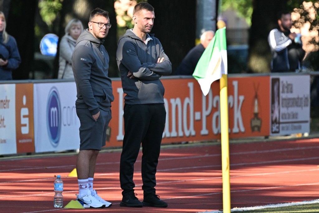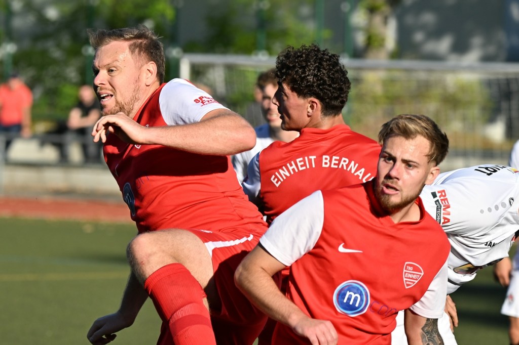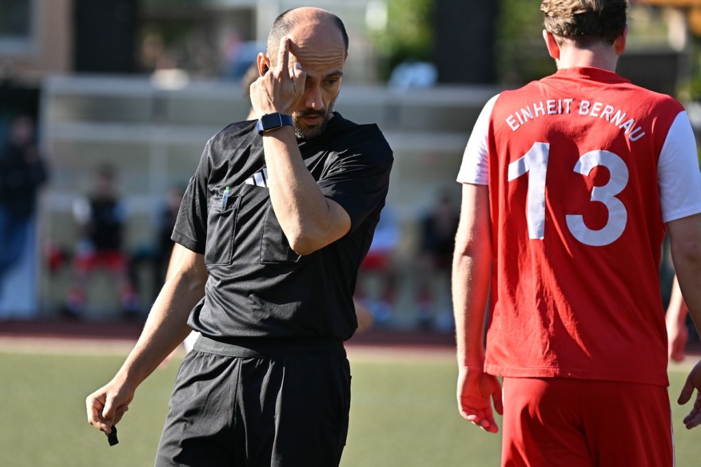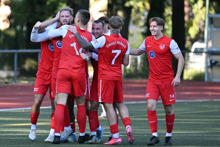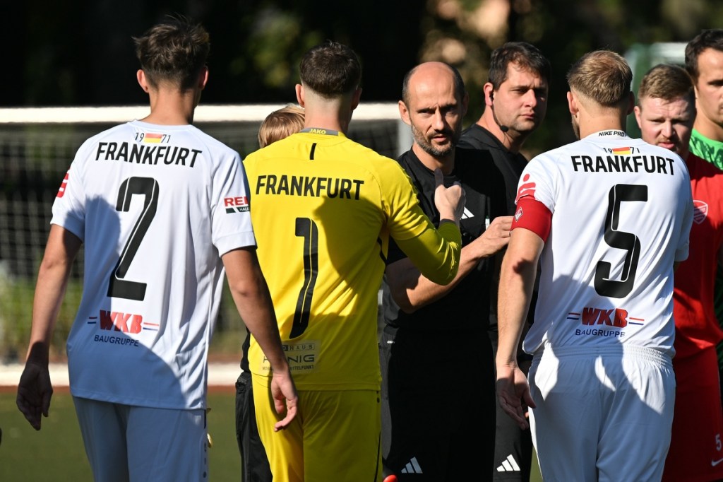 Zum Wiederanpfiff setzten die Hausherren erste Rauchzeichen in Form von Pressing-Gebärde, ohne den Gästekasten wirklich zu gefährden. Dabei nutzte Bernau die eigene spürbare Leidenschaft, welche in der Folgezeit immer mehr die Gemengelage bestimmte. Trotz der Intensität „nuddelte“ sich die Begegnung ohne große Höhepunkte zeitlich herunter. Frankfurt versuchte weiterhin den Gegner „zurechtzulegen“, was aber nur bis zur Strafraumkante gelang. Im finalen Bereich sprang nur selten etwas heraus, welches man getrost in die Kategorie der Halbchancen einordnen konnte. Kiran Czech kam zu einer guten Möglichkeit, haderte aber mit sich selbst, als er seinen freien Abschluss nicht ordentlich platzierte und neben das Tor setzte (57.). Die Partie blieb spannend, obwohl sich nur wenig ereignete. Fast wie aus dem Nichts nahm Artur Sajfutdinov in der 72. Minute seinen Mut zusammen und zog halblinks aus zweiundzwanzig Metern ab. Die Fluglinie des Balles wurde immer länger und endete im rechten Gäste-Angel mit anschließender ausgiebiger Jubelarie. Für Frankfurt ein Nackenschlag, der nun gegen weiterhin mit Inbrunst verteidigende Hausherren zur Mamutaufgabe mutierte. Dabei griffen die Gäste in die Geduldskiste und nicht zur Brechstange. Mehr als ein paar halbe Möglichkeiten sprangen aber nicht heraus. Die Zeit sprach mehr für die TSG-Aktiven, die auch die sechsminütige Nachspielzeit unbeschadet überstanden. Bernaus Trainer Matthias Schönknecht hatte den Ausschlag für den Sieg schnell gefunden. „Das Team …“, hob er in den Vordergrund und begann mit seinem Statement. „Wir hatten schon etwas Glück, dass wir zur Halbzeit nicht zurückgelegen haben. Im Endeffekt sind wir in einer ausgeglichenen Partie der verdiente Sieger“, legte er noch nach und verschwand in der Feier-Traube seiner Spieler. Sein Gegenüber, Frankfurts Coach Sascha Kloß, war sichtbar enttäuscht. „Ich denke nicht, dass der Sieg für Bernau verdient ist. Schlussendlich hat ein Sonntagsschuss die Partie entschieden. Mit einem 0:0 hätte ich noch leben können. Wir haben größtenteils das Spiel bestimmt, hatten viele Torabschlüsse und uns nicht belohnt. Bernau hat gekämpft und das haben sie sehr gut gemacht.“