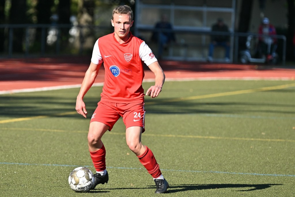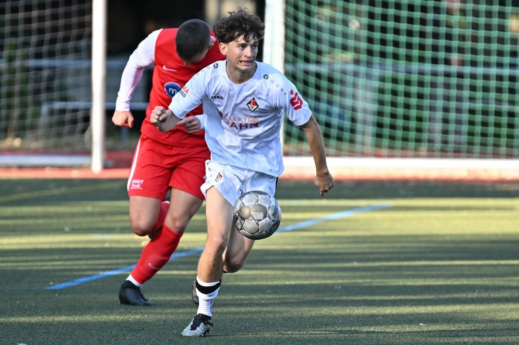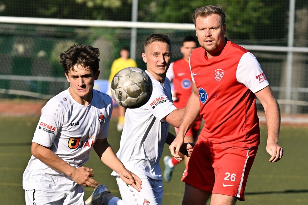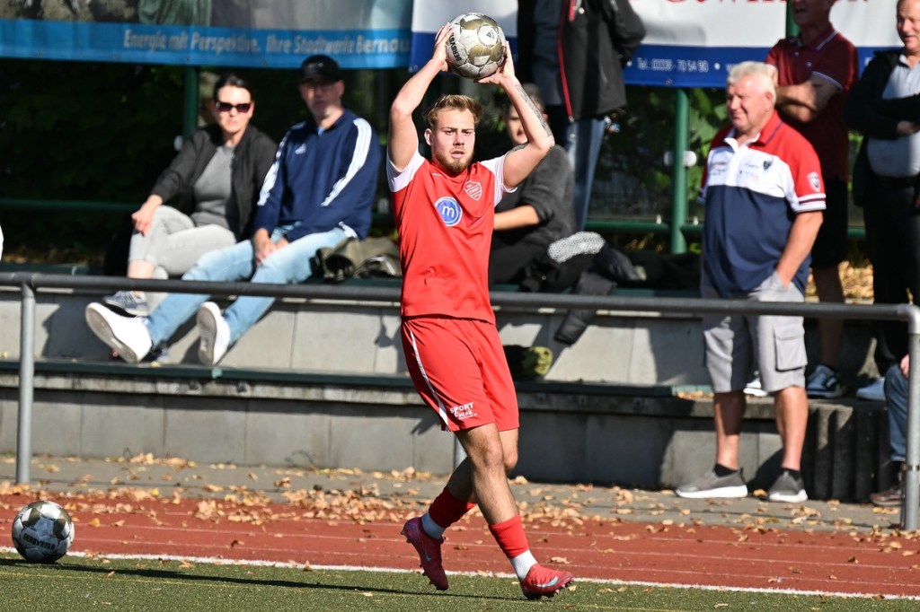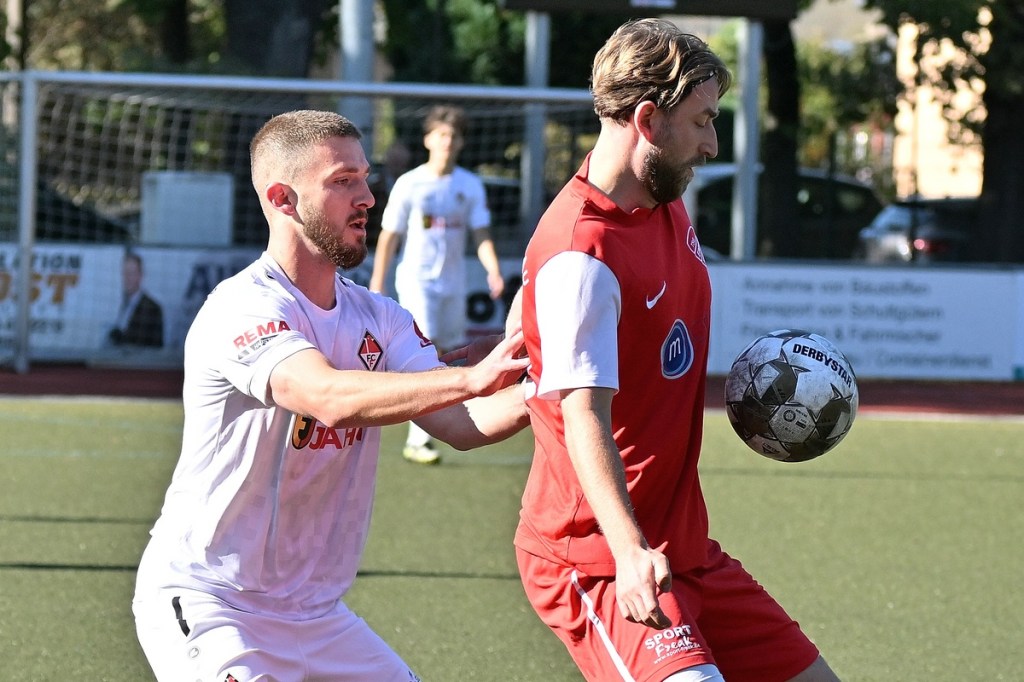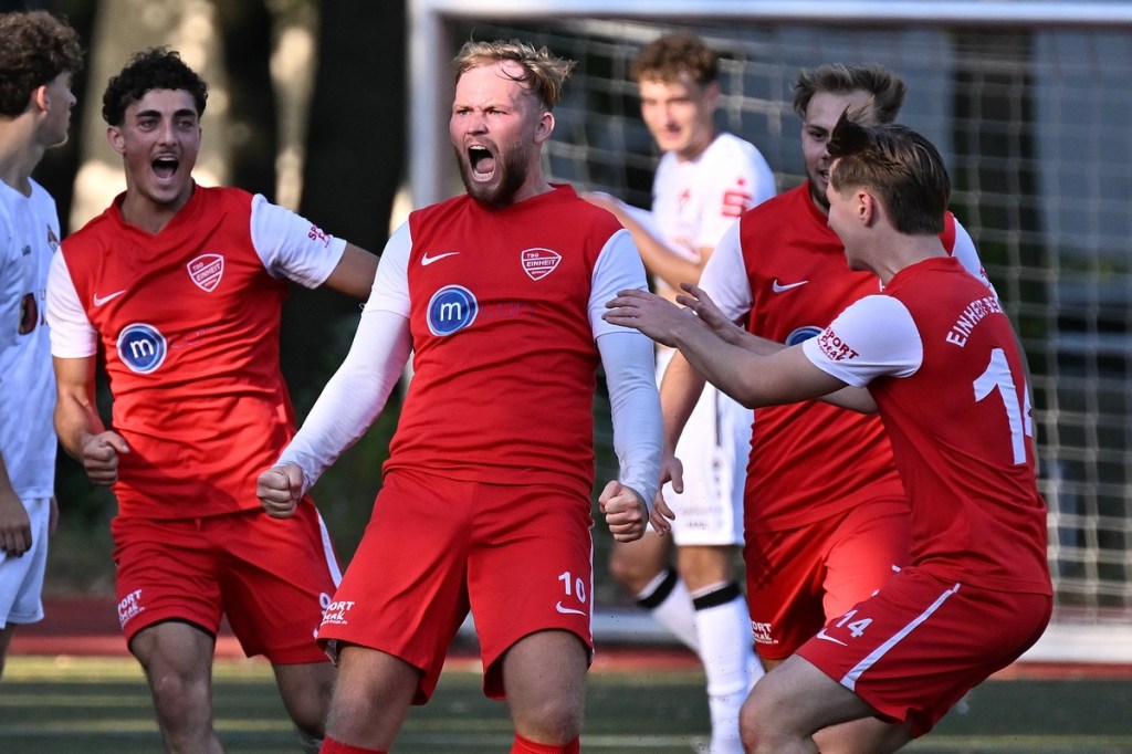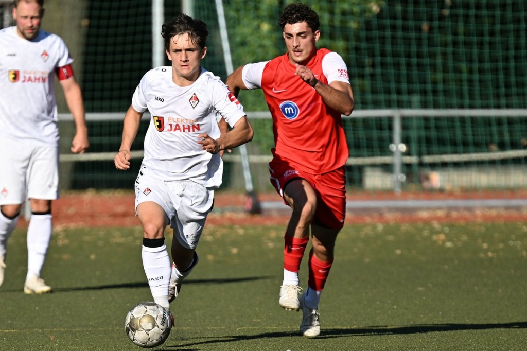 Die Partie begann intensiv, in der sich klar herausstellte, mit welchen Agenden beide Teams unterwegs waren. Während sich der 1. FC spielstark präsentierte, machte Einheit erst einmal die Schotten hinten dicht. Doch den ersten offensiven Pluspunkt kassierten die Bernauer ein. Dabei war Lukas Steinert, nachdem einer seiner Kollegen Gästekeeper Dominik Müller geprüft hatte, an der linken Fünferkante vollkommen blank zum Schuss gekommen und brachte das Kunststück fertig, die Kugel aus Nahdistanz über die Latte zu jagen (4.). Für die Hausherren bedeutete diese Möglichkeit den Hebel umzulegen und sich in die Partie hineinzukämpfen. Nach gut zehn Minuten zeigte sich das Aufeinandertreffen ausgeglichen. Frankfurt agierte oft im One-Touch-Modus mit anschließenden präzisen Diagonalbällen, die schon eine gewisse Gefährlichkeit ausstrahlten. Doch Bernau stellte sich zusehends darauf ein, verteidigte mit Leidenschaft, was den Gästen immer mehr den Schneid abkaufte. So dauerte es vierzehn Minuten bis zur ersten nennenswerten Gästemöglichkeit. Diese hatte Kieran Czech auf den Schlappen, als er sich lang angespielt in Schussposition brachte und Bernaus Schlussmann Steve Jarling in die Prüfung zwang. Nur eine Minute später hatten einige Hausherren den Jubelschrei schon auf den Lippen. Luis Hübner war nach einem Eckball am höchsten gestiegen und hatte den Ball mit der Stirn sehr knapp neben den Pfosten gesetzt. Die Folgezeit hatten sich die Bernauer gebucht. Dabei machte die Truppe aber den Fehler, in der Endkonsequenz zu hektisch unterwegs gewesen zu sein. Frankfurt im Gegenzug zuckte im Vorwärtsgang nicht ungefährlich. Hugo Bloch bekam die Kugel diagonal aufgelegt, schaffte es aber nicht, bedrohlich abzuschließen (24.). Genau diese Gefährlichkeit fehlte auch den Hausherren, sodass die Null auf der Anzeigetafel weiterhin Bestand hatte. Nach gut einer halben Stunde hatte Frankfurt die Partie wieder unter Kontrolle bekommen. Ein Freistoß lang in den Strafraum geschlagen, verwertete Danny Mank mit einem platzierten Schuss, welchen Steve Jarling per Glanztat entschärfte (37.). Mank war es auch, der den nächsten Riesen in den Lauf durchgesteckt bekam. Schlussendlich gewann der Bernauer Torhüter das Eins-Gegen-Eins-Duell, in dem er im Nachfassen das Spielgerät unter sich begraben konnte (39.).