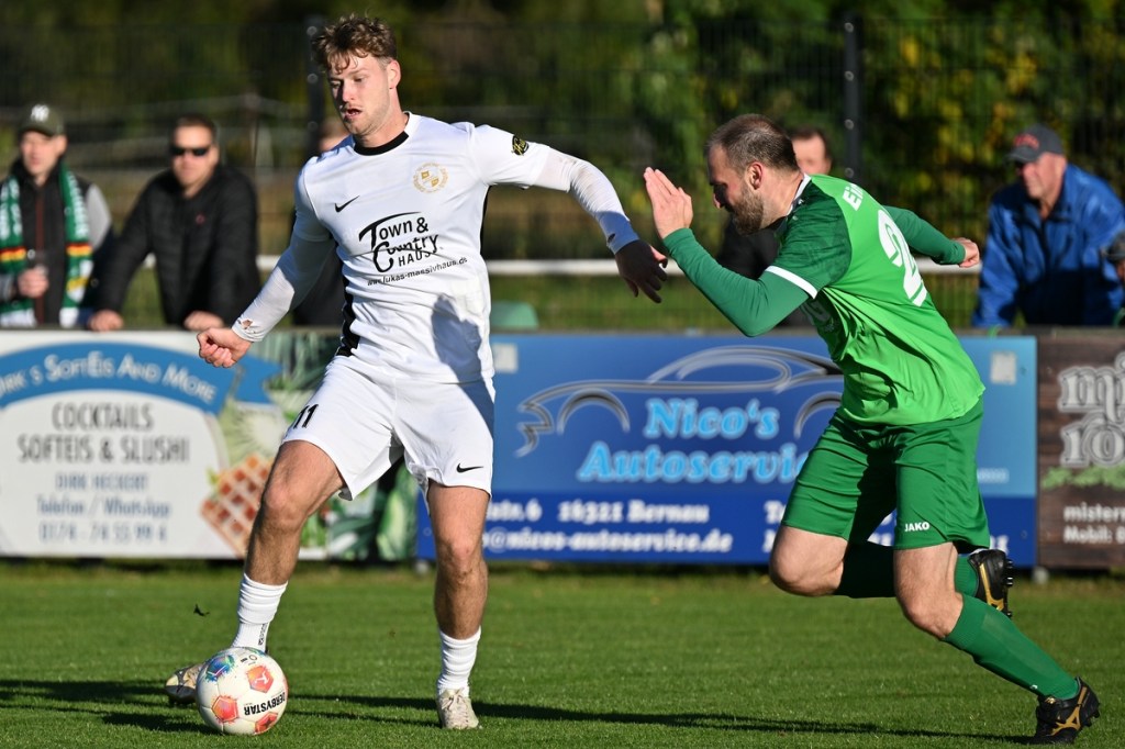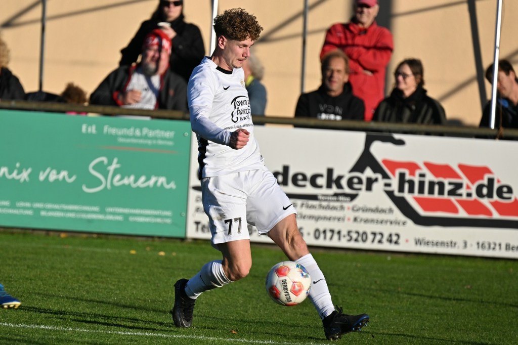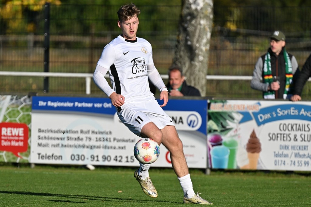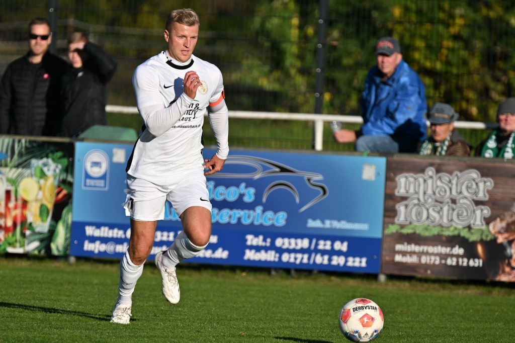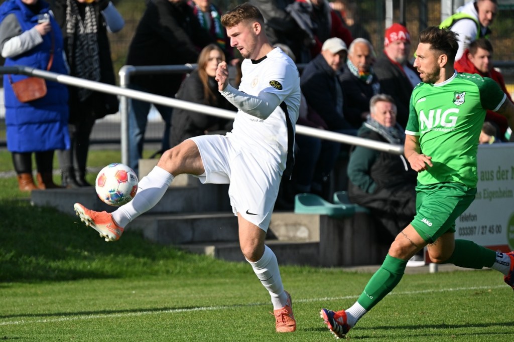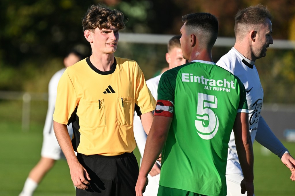 Zum Wiederanpfiff änderte sich die Gemengelage in Richtung Augenhöhe. Die vermutlich laute Ansprache in der Gästekabine zeigte Wirkung. Da stellte sich schon die Frage, warum erst jetzt? In jeden Fall war es nun die erwarte Partie, ein richtiges Fußballspiel. Rasse und Leidenschaft waren eingezogen. Alt Ruppin mit viel überzeugenderer Körpersprache ließ den Favoriten in einigen Situationen schon etwas wanken. Tietz, der in Durchgang eins völlig arbeitslos war und der hinter seinem Tor schwebenden Drohne beim „Surren“ zuhören konnte, bekam jetzt mehr zu tun als ihm lieb war. In der 50. Minute bekamen seine Defensiv-Mitstreiter die Situation nicht geklärt und er musste Kopf und Kragen riskieren, um einen Abschluss von Max Hellwig zu entschärfen. Praktisch im Gegenzug prüfte Justin Pehl mit platzierten Geschoss Gästetorsteher Schwieghaus, der mit guter Parade die Oberhand behielt. Schwieghaus war auch in der 54. Minute zur Stelle, als er sicher den Schuss von Luca Grabarek parierte. Den größten Gäste-Riesen hatte Benjamin Brandt auf den Schlappen. Ein abgewehrter Ball gab ihm im Rückraum die Möglichkeit, platziert einzunetzen. Doch ohne Fortune nagelte er den Ball in die zweite Etage des Zepernickers Gehäuses (56.). Nach gut einer Stunde bekam Einheit die Partie wieder besser in den Griff. Chancen zur Erhöhung der Torausbeute waren durchaus gegeben. Justin Pehl und Paul Maurer hätten sich in der 61. Minute klarere Signale geben sollen, als sie sich nach sehenswertem Anspiel durch Grabarek an der Fünfer-Kante gegenseitig behinderten und Schwieghaus zum lachenden Dritten machten. Das 5:0 bereitete der eingewechselte Justin Engfer mir flacher Eingabe vor. Paul Maurer war der Adressat, der sich mit allen Freiheiten behaftet nicht zweimal bitten ließ, um den Endstand herzustellen (77.). Alt Ruppin zeigte sich in Halbzeit zwei stark verbessert und hätte sicherlich auch den Ehrentreffer verdient. Am Ende steht ein Favoritensieg auf dem Spielformular, der mit einem „was wäre, wenn“ sicherlich nicht so souverän ausgefallen wäre. Zepernicks Trainer Markus Haase, der seinen Chef Lucio Geral vertrat, war trotzdem zufrieden, in der Analyse aber auch kritisch, mit dem Auftritt seiner Mannen. „In der Pause haben wir schon darüber gesprochen, dass es eine Kunst ist, die gezeigte Souveränität mit in den zweiten Durchgang zu transportieren. Dies ist uns leider nicht gelungen. Auch fehlte uns die letzte Konsequenz in unseren Angriffsbemühungen.“