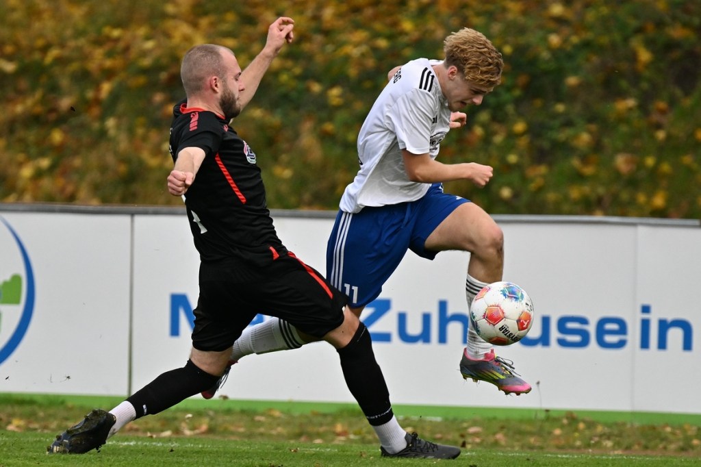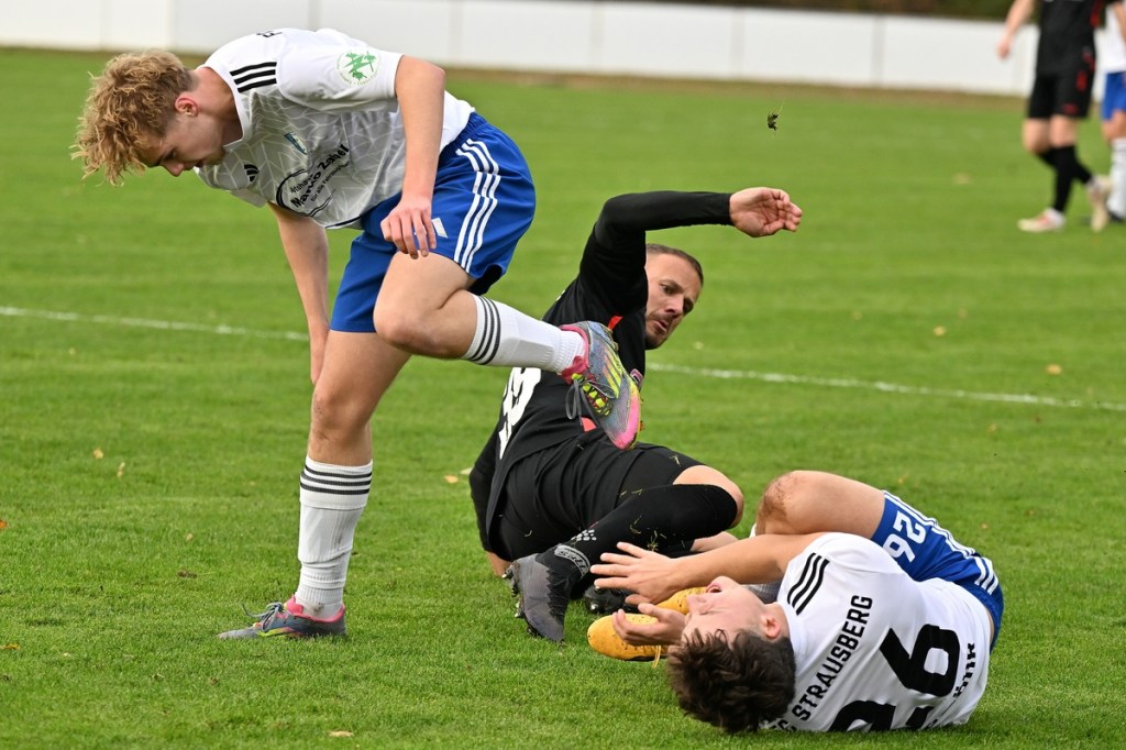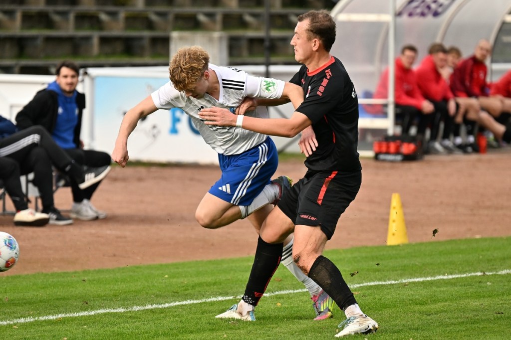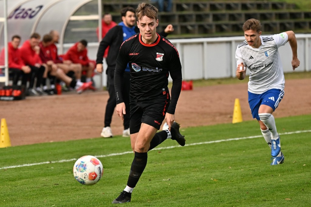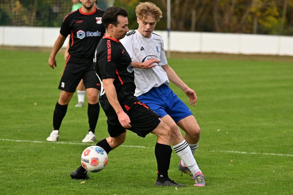 Das Wetter stimmte, die Platzverhältnisse nach den intensiven Regentagen, auch. Die Begegnung hatte eine gute Viertelstunde lang nicht viel zu bieten, außer dass Schönow der Partie etwas mehr Stempelgröße aufdrückte. Doch drei Möglichkeiten der Hausherren ließen das Spiel zu Gunsten der Strausberger kippen. Erst war es Maximilian Brasch, der gut positioniert ein Schüsschen absetzte (15.), dann Joel Wilhelm, dessen Kopfball zu unplatziert auf den Gästekasten kam (16.) und schlussendlich Luis Suter, der bestens bedient von Flankengeber Silvan Küter mit langem Bein den Ball neben das Tor schob (17.). Strausberg war nun im Spiel und Rot-Weiß gar nicht mehr. Die Galligkeit, besonders im Zweikampfverhalten, von Max Röhr und seinem Bruder Moritz Röhr bereitete den Gästen schon einiges an Kopfzerbrechen. Ein Freistoß aus halblinker Position landete im Fünfer und ließ Schönow nicht gut aussehen. Ein wenig Gestochere mit Abschlussversuchen ließ die Kugel im Netz zappeln. Strausbergs Joel Wilhelm wurde als Torschütze offiziell genannt, doch den Ball brachte RW-Verteidiger Mino Lehnhardt aus Nahdistanz im eigenen Tor unter (26.). Die Führung war verdient, nicht nur wegen des Torerfolges, sondern auch, weil der FC nicht lockerließ. Schönow hingegen wirkte lethargisch, bekam einfach keine Geschwindigkeit in die eigenen Momente und verlor zudem noch reichlich Zweikämpfe. So war es nicht verwunderlich, dass Strausberg nachlegte. Silvan Küter hatte schon vorab mit seinen langen Einwürfen angezeigt, dass diese die gleiche Qualität wie Eckstöße haben können. Sein Wurf landete im Fünfer, wo Moritz Röhr per Kopf zur Stelle war und RW-Torsteher Enrico Müller keine Chance ließ (36.). Es war von Gästeseite aber auch stümperhaft verteidigt. Wenn man die Recken in der Schönower Abwehr und den normalgroßen Röhr nebeneinanderstellte und zusehen konnte, wie einfach in dieser Situation eine Bude zu machen war. Die 43. Minute war angebrochen, da kam Rot-Weiß zur ersten erwähnenswerten Chance. Ein schneller Angriff über die rechte Seite brachte Tom Schneider ins Geschehen. Der kam aber einen Wimpernschlag zu spät und musste somit FC-Keeper Florian Rudolph das Spielgerät überlassen.