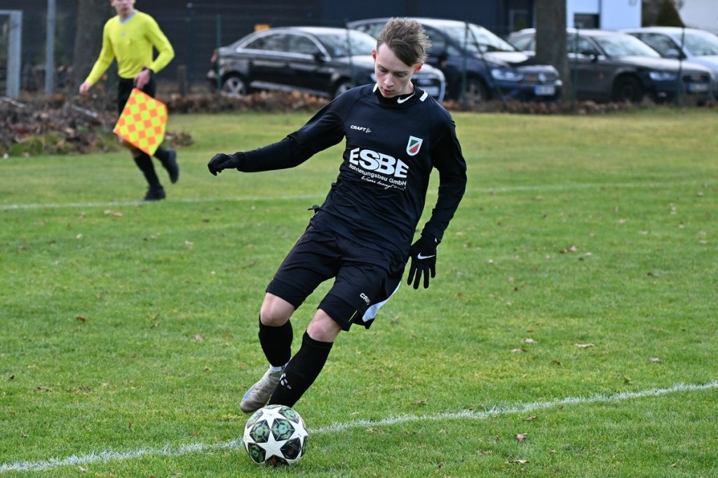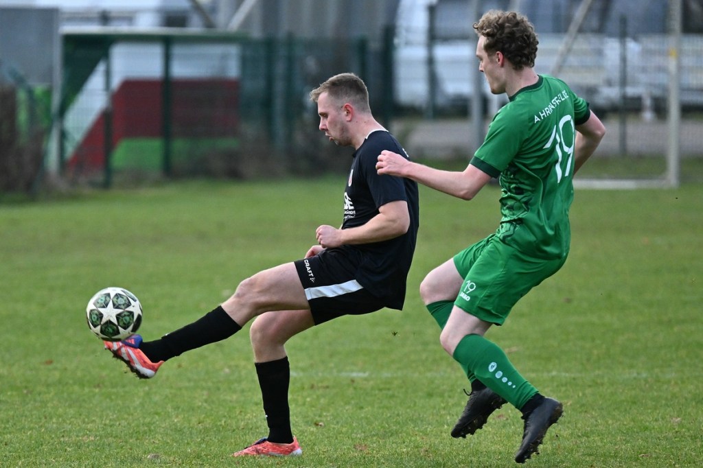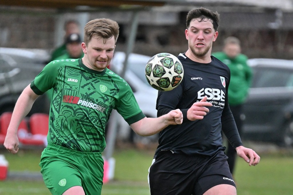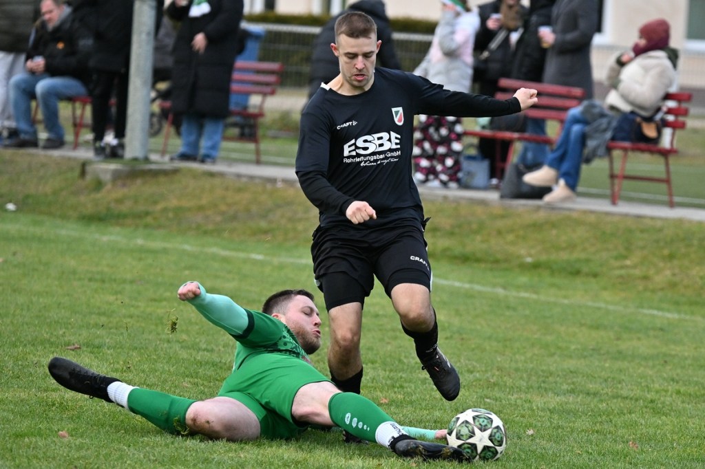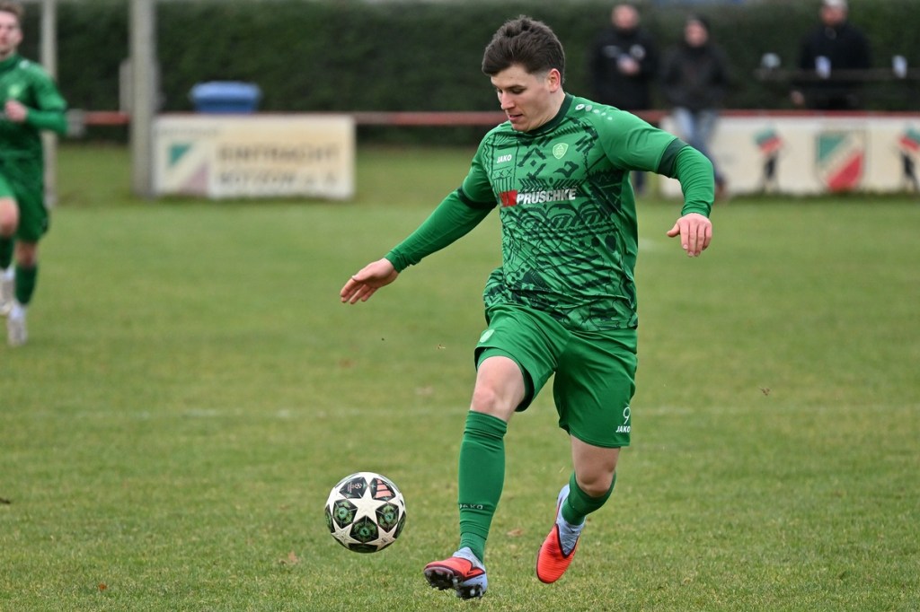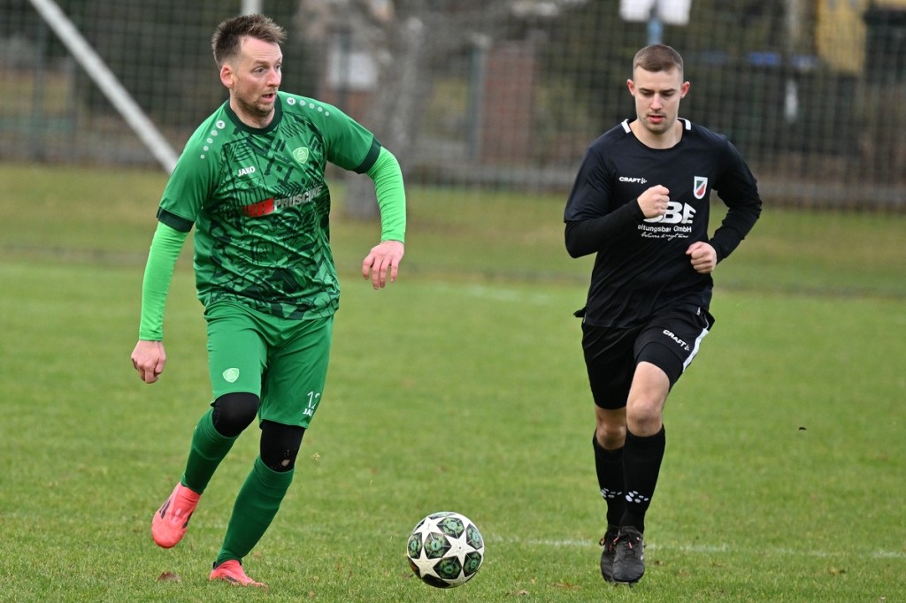 Denn Fiedlers Glaube konnte relativ früh gefüttert werden. Seine Jungs führten nach dreizehn Minuten nicht unverdient mit 0:1, was dem engagierten Auftritt erst einmal auch entsprach. Tobis Schulz war nach einem Eckball zur Stelle, als Eintracht den Ball schlampig herausspielte, er erneut flankte und Glück hatte, dass die Kugel an Freund und Feind vorbei im Tor einschlug. Bis zu diesem Zeitpunkt hatten beide Vertretungen jeweils einmal ein Rauchzeichen gesetzt und Ahrensfelde den griffigeren Eindruck hinterlassen. Doch die Gästefreude war noch gar nicht verklungen, da lag das Spielgerät im eigenen Netz. Torschütze war Robin Schneider, dem sein Abwehrversuch misslang und die Hausherren jubeln ließ, als er per Eigentor den Ausgleich erzielte (14.). Die Begegnung kippte nun ein wenig, weil Bötzow die eigene Rückhaltung etwas ablegte und mehr in die Offensive investierte. Schnörkellos ging es jetzt über die Außen und auch zum Torerfolg. Zwei Stationen und lapidare Gäste-Abwehrarbeit im Mittelfeld reichten, um Sebastian Senning in Schussposition zu bringen, der vom linken Strafraumeck abzog und auch traf (19.). Die Führung war jetzt nicht unverdient. Bötzow kontrollierte die Partie, agierte geduldig und zeigte sich sehr effizient. „Karo einfach“ blieb das probate Mittel der Hausherren, was in der nächsten sich bietenden Möglichkeit wieder zum Erfolg führte. Diesmal war es Lennert Schwach, der als Torschütze davon profitierte, wie lehrbuchartig, konsequent und einfach Angriffe an der Seitenlinie entlang aufgezogen und mit flacher Eingabe ins Ziel gebracht werden können (31.). Grün-Weiss hatte daran zu knabbern und offenbarte gerade in der Defensivleistung in allen Belangen große Mängel. Dass sich diese Negativzeichen auch in Standards, wie bei Eckbällen, zeigten, quittierten die Hausherren knallhart mit dem 4:1. David Stein staubte ab und schob damit die Partie für die Gäste schon Richtung Debakel. Eintracht ließ einfach nicht locker. Wieder wurde ein Angriff über die linke Seite eröffnet. Und zum wiederholten Male wurde Lennert Schwach zum Nutznießer der genannten Pragmatik, als er die Barnimer mit dem 5:1 in die Halbzeitpause schickte (45.+2).