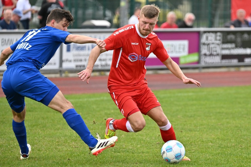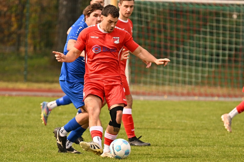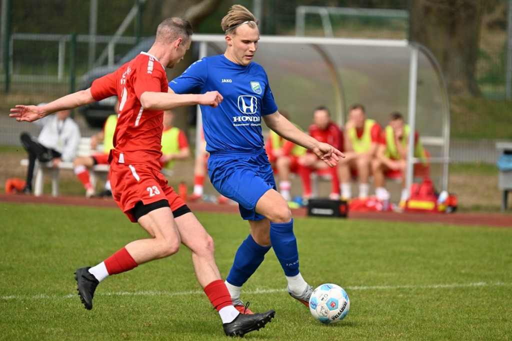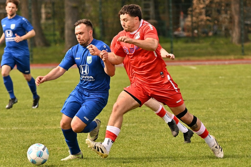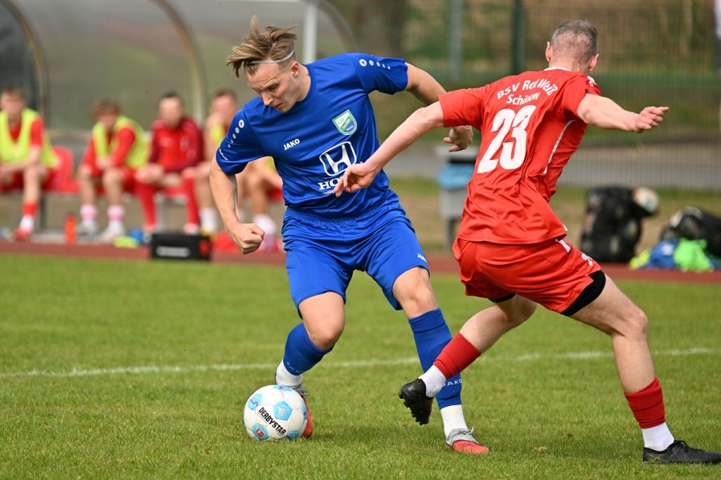 Dabei begann die Partie recht verhalten und musste schon nach einer Minute in eine längere Unterbrechung gehen, weil man mit dem Ballmaterial unzufrieden war und sich schlussendlich nicht entscheiden konnte, welcher Härtegrad nun der richtige sein sollte. Die Anfangsphase wurde von schwerer Kost begleitet. Keines der Teams fand den Weg in die Partie, vieles blieb noch Stückwerk. Unter der Dauerbeschallung einer Motorkettensäge aus der Nachbarschaft kam Wandlitz zur ersten Möglichkeit, welche schlussendlich auch in einem Torerfolg mündete. Schonöw schaffte es nicht den öffnenden Pass Richtung rechter Seite zu unterbinden. Manuel Thomas war der Adressat, der nicht lange fackelte, abzog und links unten traf. RW-Keeper Enrico Müller hatte zwar noch die Finger dran, den Einschlag konnte er aber nicht verhindern (13.). Die Gäste blieben erst einmal am Drücker. Doch ein Nachlegen, wie beim Schuss von Nico Rücker, verhinderte die vielbeinige Heimabwehr (15.). Wer nun auf ein Aufbäumen der Hausherren hoffte, sah sich in der Folge getäuscht. Schönow tat sich weiterhin schwer, ließ Grundtugenden, wie Einsatzfreude, Galligkeit und der Anzeige eines Planes vermissen. Die erste Möglichkeit der Rot-Weißen resultierte aus einem Freistoß. Diesen brachte Hannes Krüger direkt auf den Kasten, doch Florian Schweitzer, der Eintracht-Torsteher, zeigte sich konzentriert und meisterte diese Aufgabe sehenswert (24.). Spielerisch lief in den Reihen der Hausherren nur wenig zusammen. Für Wandlitz ein positiver Umstand, der das Team mit solider Abwehrarbeit noch mehr zusammenschweißte und dem Auftritt das benötigte Selbstvertrauen einimpfte. Rot-Weiß fand weiterhin keinen richtigen Zugang zum Spiel. Dustin Warmbrunn versuchte verbal als steuerndes Element im Mittelfeld die Fäden zu ziehen. Seine hinweisenden Worte wurden aber überhört, denn im Vorwärtsgang agierte die Truppe viel zu durchsichtig und statisch. Richtig ernst machte Schönow in der 33. Minute. Hannes Krüger wurde diagonal angespielt, nahm an der rechten Strafraumgrenze genau maß und nagelte das Spielgerät an den rechten Pfosten. Die Nachschussmöglichkeit war gegeben, verpuffte aber in den Wandlitzer Körperteilen, die sich dem Abschluss entgegenwarfen. In dieser Phase kam Schönow etwas besser in die Partie. Doch Wandlitz blieb weiterhin die gefährlichere Truppe. Der Doppelchance in der 37. Minute durch Roman Schmidt und Paul Roller, folgte das 0:2. Ein langer Ball auf Schmidt, der dann Nico Brauer im Zweikampf düpierte, präsentierte die Torjäger-Qualitäten des Eintracht-Goalgetters. Ohne Schnörkel ließ er beim Schuss RW-Torhüter Müller nicht die Spur einer Abwehrchance (39.). Schönow schien angeschlagen, brachte offensiv kaum noch etwas auf den Rasen. „Wie ideenlos“, posaunte Müller seine Kollegen an und hatte damit den Nagel hundertprozentig auf Kopf getroffen.